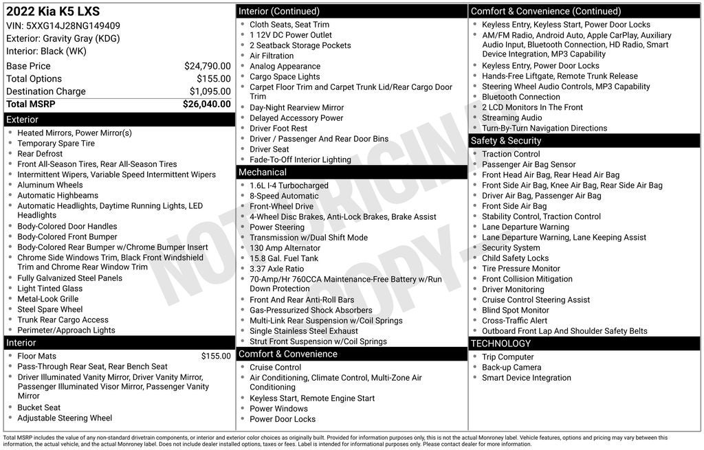 - Vehicle Name: Kia K5