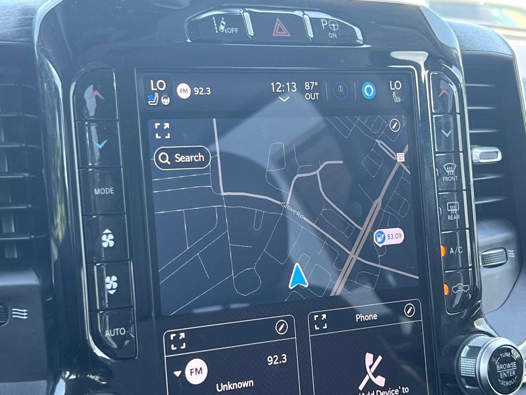The interior of this Ram 1500 Limited is equally impressive, with premium quilted leather seats, a heated steering wheel, and a 12-inch Uconnect 5 Navigation display. Enjoy the convenience of wireless charging, the clarity of a 19-speaker harman/kardon audio system, and the added security of a Surround View Camera and Pedestrian Emergency Braking.