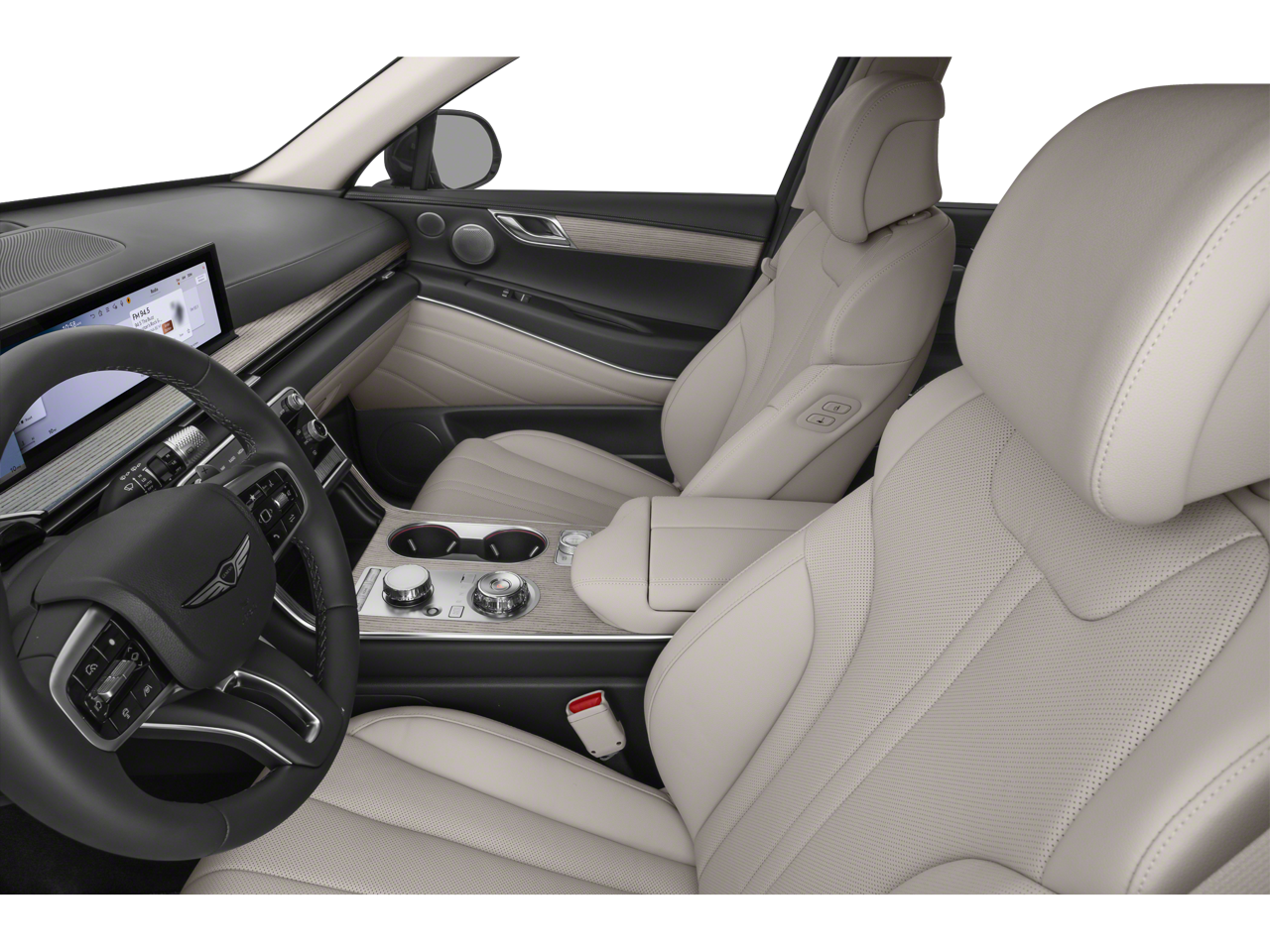 - Radio: AM/FM/SiriusXM/HD -inc: premium audio w/12 speakers, 27" integrated OLED instrument cluster and navigation system, SiriusXM Radio w/90-day subscription (not available in AK or HI), cloud connected platform (cloud profiles, connected routing, dynamic voice recognition, OTA updates), wireless Apple CarPlay, wireless Android Auto, Bluetooth® hands-free phone system w/audio streaming, wireless phone charger, Wi-Fi hotspot, steering wheel controls, USB and Genesis Connected Services Wireless Apple CarPlay and wireless Android Auto are late availability.