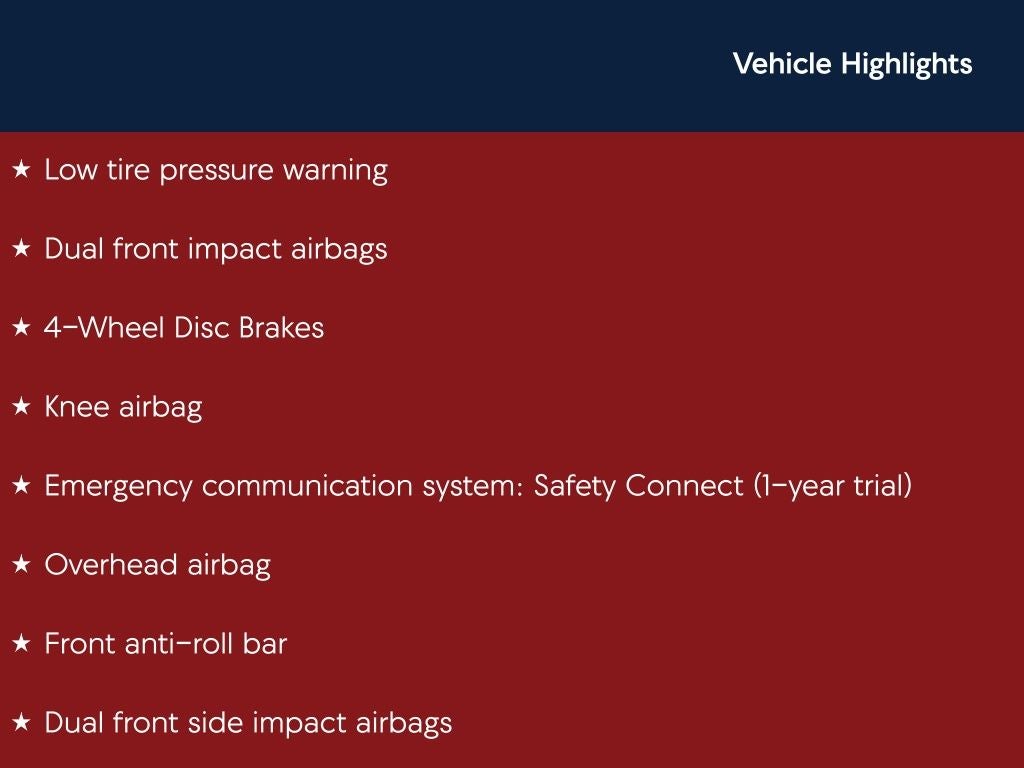 - Emergency SOS Capable Safety Connect (1-year trial) vehicle integrated emergency SOS system